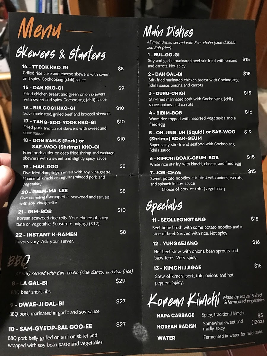 “ The owner came to our table after our meal came and asked how everything was. I can only say great things about this woman and her food. Yes she cooked our meals as well! We had service with a smile and the atmosphere was very inviting and felt like a mother’s home cooked meal. Very warm and inviting. Highly recommend if you’re in the area of mount pleasant to try this place. I have to say though if you can’t handle spicy then don’t try the kimchi lol the taste was great but I can not do spicy. If you can’t handle spice then I say absolutely try it! ”